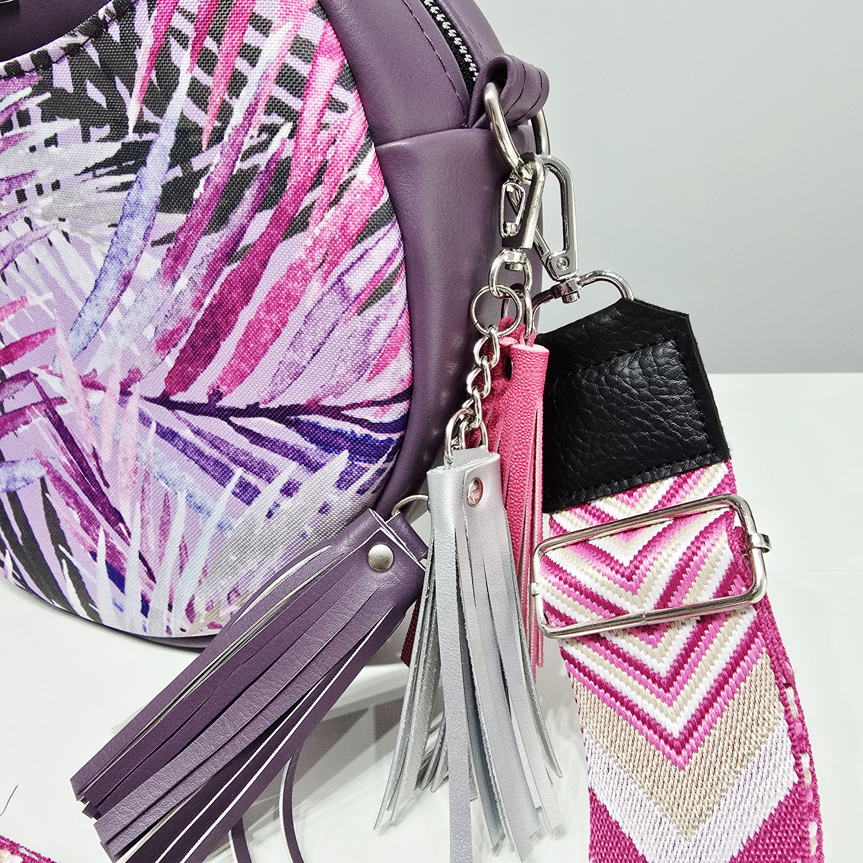 do torebki dołączany jest szeroki pasek o maksymalnej długości 130 cm.