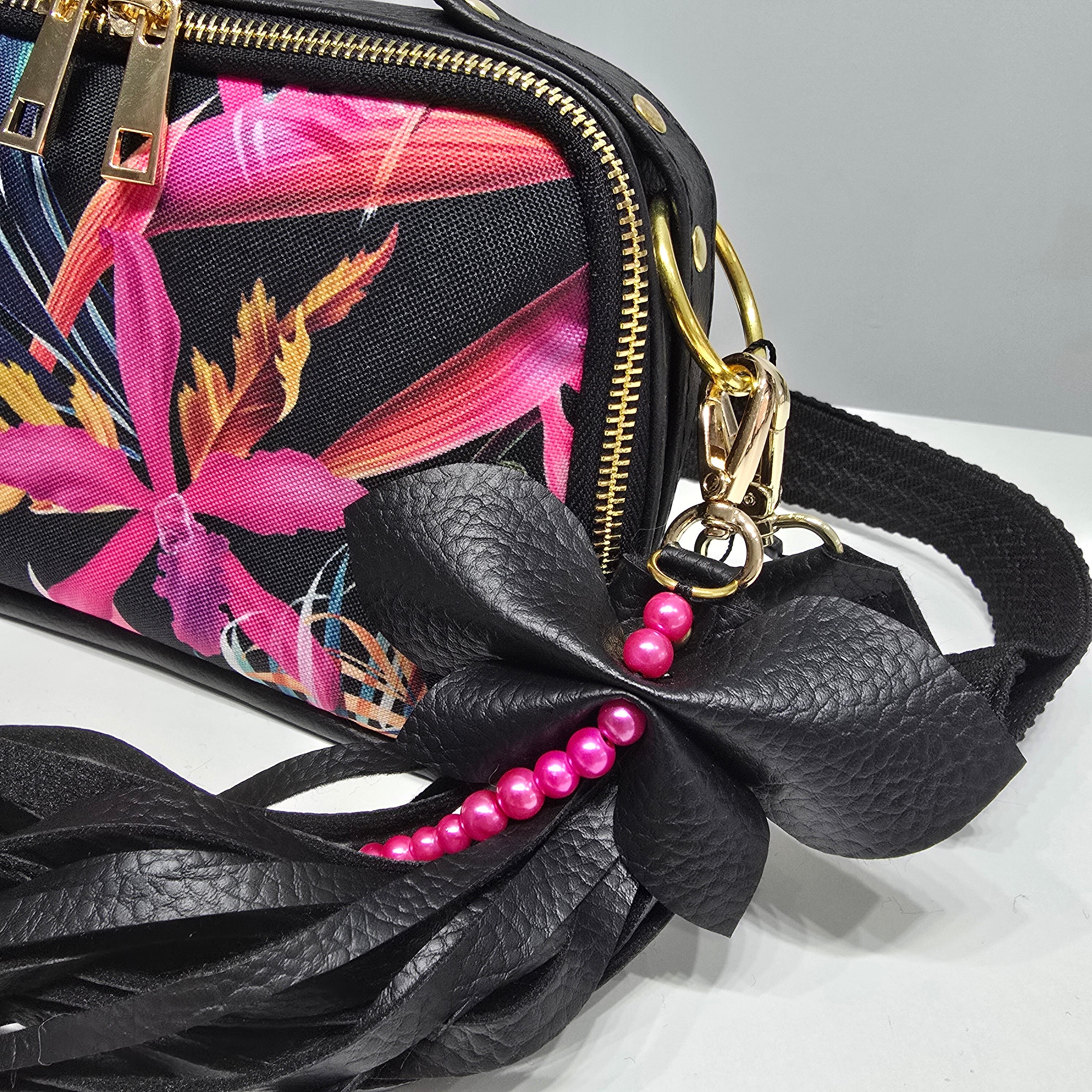 Do torebki dołączany jest pasek tkany o szerokości 4 cm (po wcześniejszych ustaleniach jest możliwość wymiany paska na inny, dostępne paski znajdziesz TUTAJ).